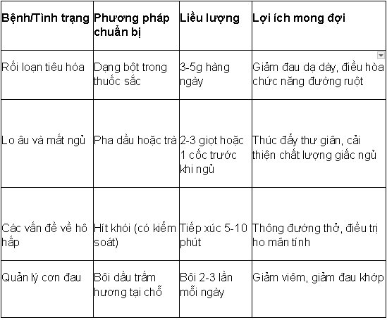Tinh dầu trầm hương: Dùng để khuếch tán, massage.
